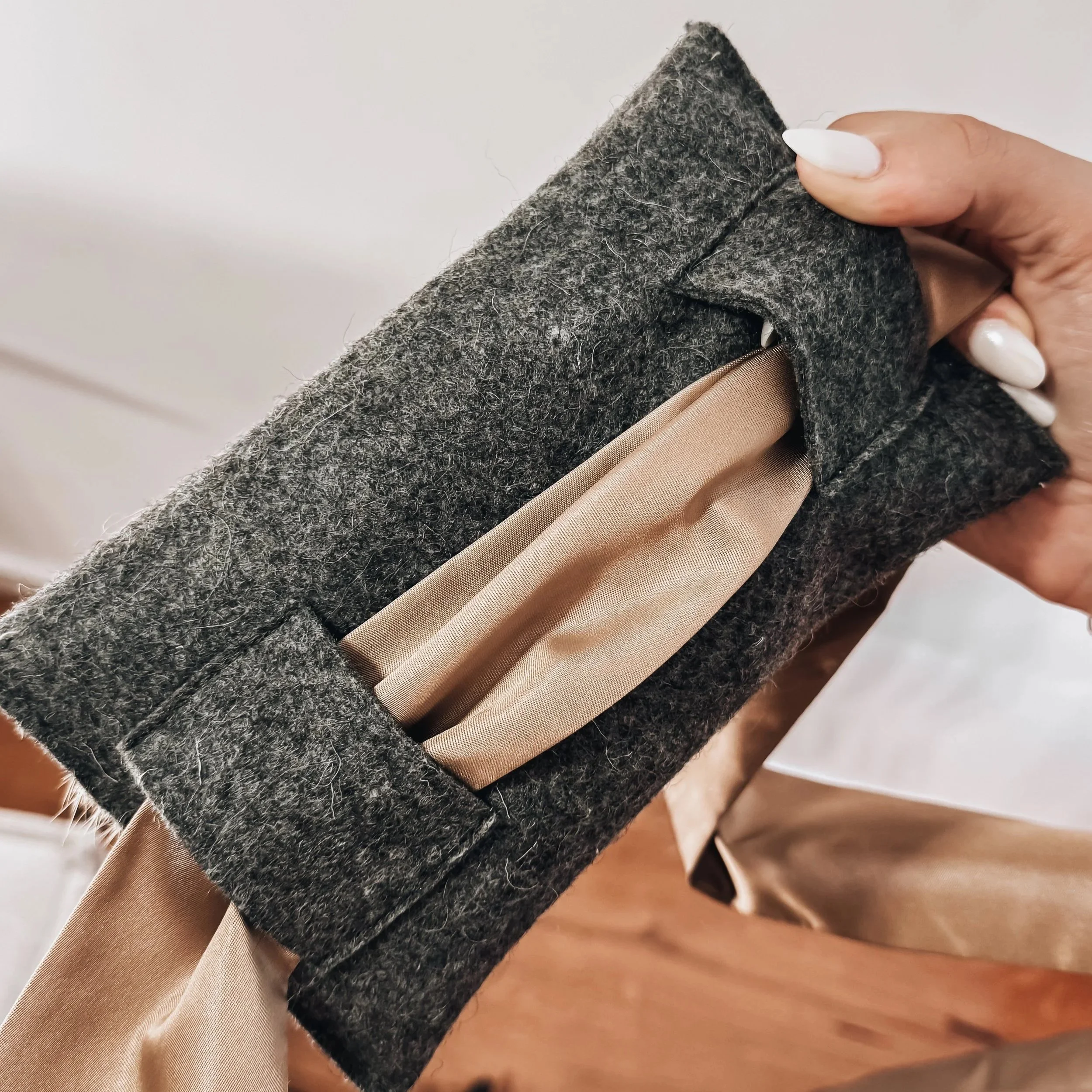 Wollfilz: Der Hauptbestandteil ist Wollfilz, der nicht nur durch seine Langlebigkeit überzeugt, sondern auch besonders pflegeleicht ist. Dadurch behalten die Taschen auch bei regelmäßiger Nutzung ihre Form und Qualität.